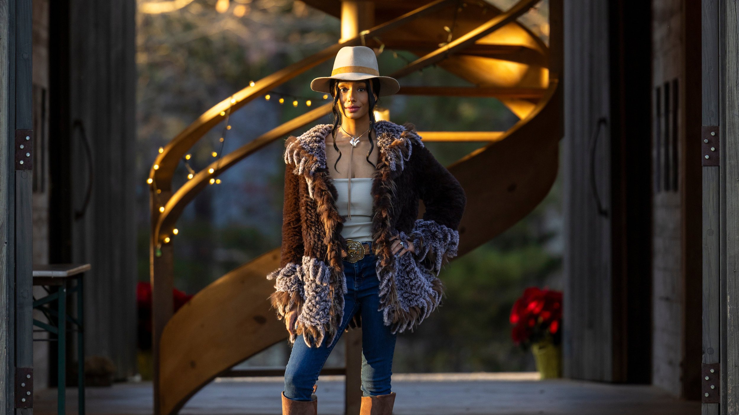 Meet the Bozeman Fringe, the signature jacket from Après Ranch — a hand knit faux fur fringe jacket designed to take you from the barn to the bar. Inspired by Western heritage and modern mountain style, this statement piece blends comfort, movement, and elevated craftsmanship.
